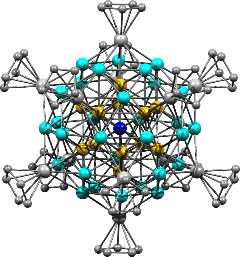 Synthétisé à Munich, cet agrégat stable de 55 métaux comprend 67 électrons, ce qui contrevient à la règle du nombre magique. De plus, il est le premier superatome connu à avoir des électrons non appariés, au nombre de trois, délocalisés sur les différents atomes de l’agrégat. Cela lui confère des propriétés magnétiques jusqu’alors inédites. Celles-ci pourraient être exploitées en spintronique, une technique qui utilise les propriétés magnétiques des atomes, et donc possiblement des superatomes, pour stocker et transférer des données. Les chercheurs impliqués comptent d’abord développer de nouveaux superatomes de ce type et explorer leur chimie particulière.