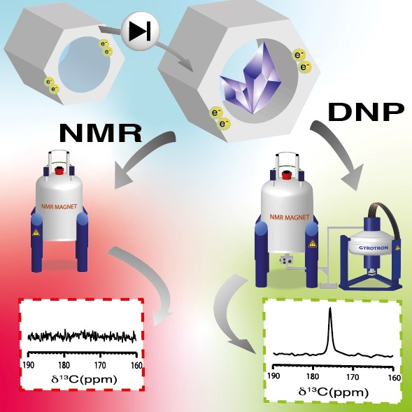 Les scientifiques ont pour cela conçu des nanomatériaux, de la famille des silices mésoporeuses dites « SBA-15 », présentant des pores de 7 à 8 nanomètres de diamètre au sein desquelles se produit la transition de l’état liquide vers l’état solide. La RMN est sensible au moment magnétique du spin des noyaux des atomes et peut identifier les différentes phases (liquide, solide…) impliquées dans la cristallisation. Cependant, l’intensité du signal RMN peut être trop faible, surtout lorsque le processus de cristallisation se produit dans les pores d’un nanomatériau, pour détecter les différentes phases du processus de cristallisation. Le nanomatériau SBA-15 contient cependant des électrons célibataires, qui permettent d’augmenter de manière impressionnante l’intensité du signal RMN grâce au phénomène de polarisation dynamique nucléaire. Cette augmentation de l’intensité du signal RMN est basée sur le transfert de la polarisation de spin des électrons célibataires vers le spin des noyaux sous l’effet d’une irradiation microonde, générée grâce à un instrument de pointe : le gyrotron. Le signal RMN est alors environ dix fois plus intense et réduit la durée totale de l’expérience RMN de plusieurs semaines à seulement quelques heures. Les chercheurs ont testé la méthode avec succès sur de la glycine, observant que des phases restaient métastables pendant plusieurs jours dans les pores des nanomatériaux. L’équipe étudie à présent la cristallisation en milieu confiné d’autres molécules, dont l’aspirine afin de stabiliser les formes solides présentant les activités pharmaceutiques les plus pertinentes pour des applications thérapeutiques.